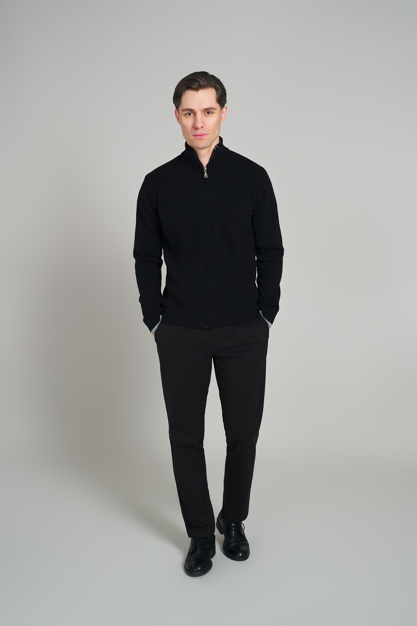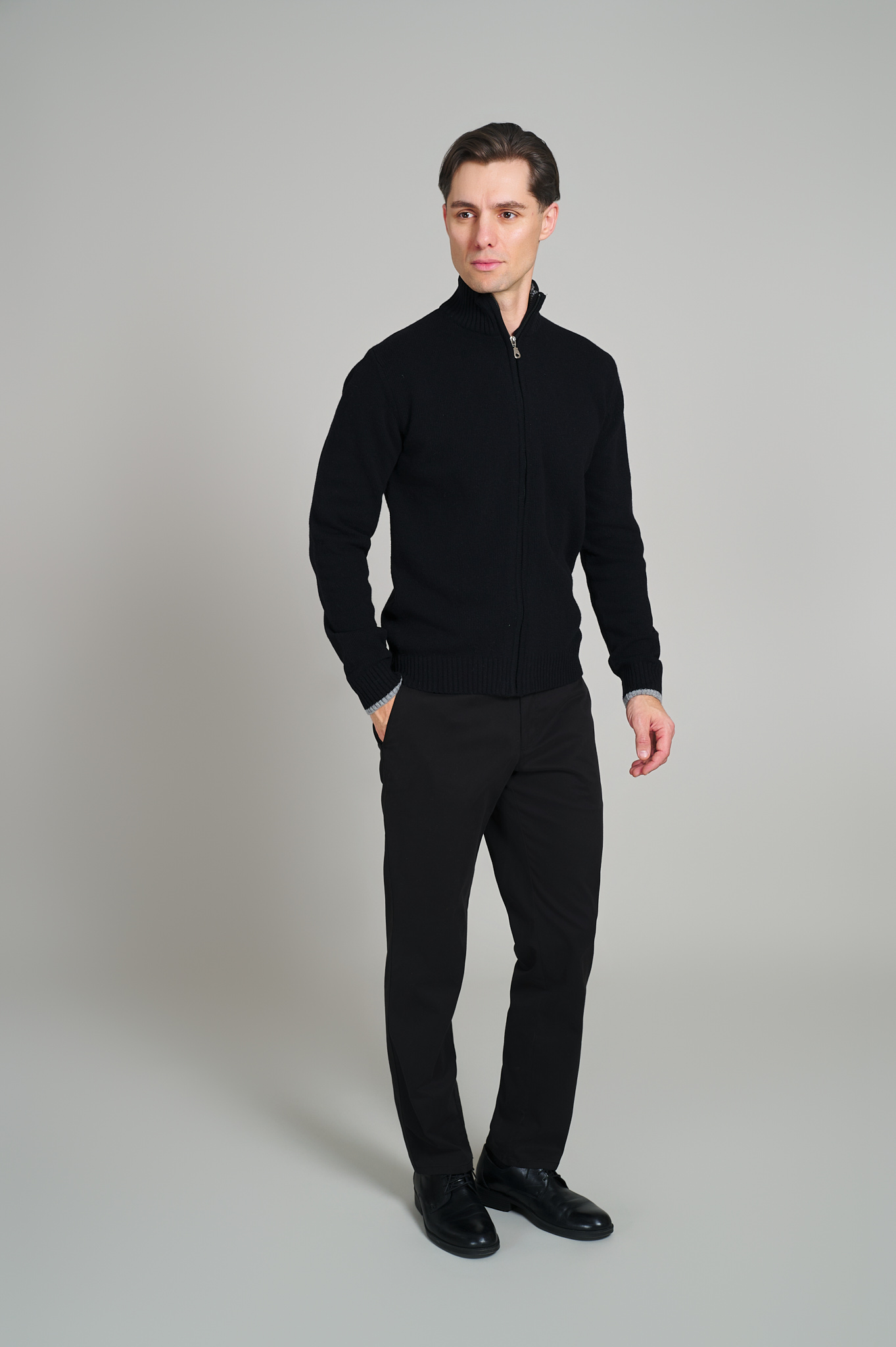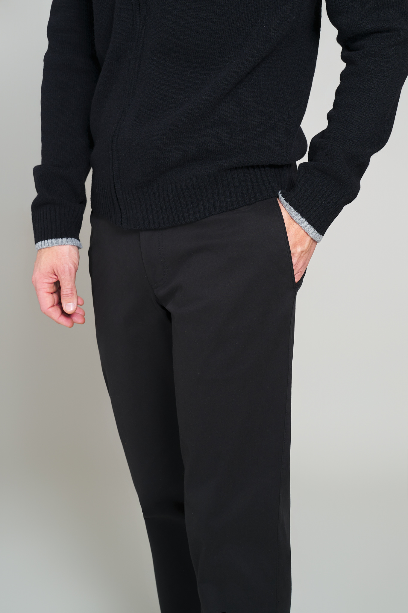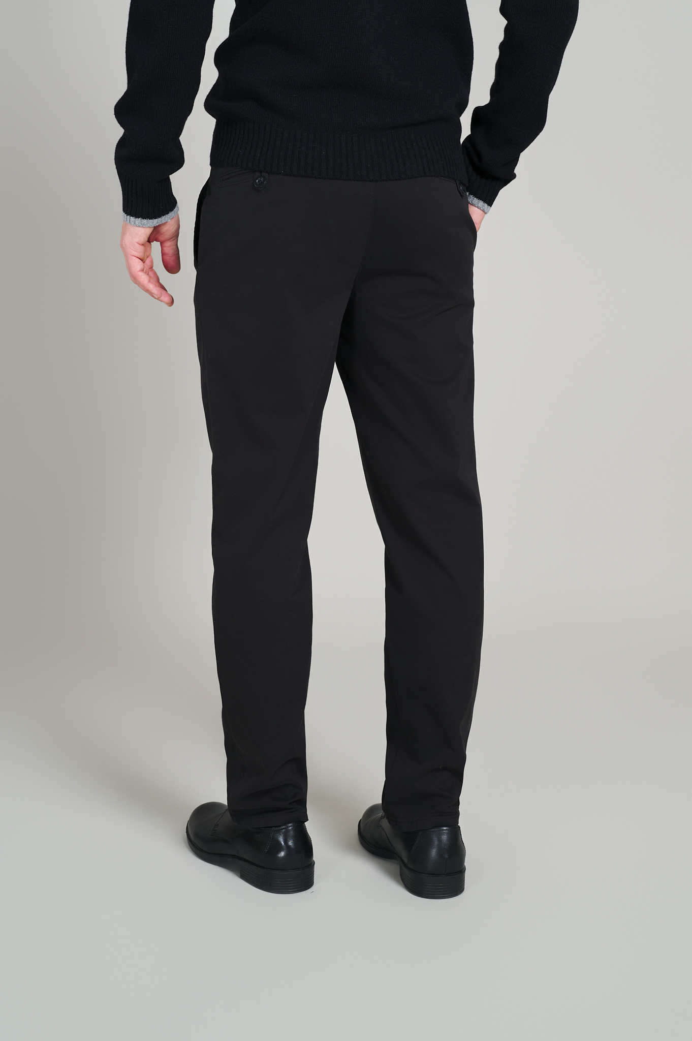 Pantaloni casual negru, modern-fit, din țesătură naturală de bumbac, cu 4 buzunare clasice. Lățime terminație-tiv(masura 50): 19 cm.
