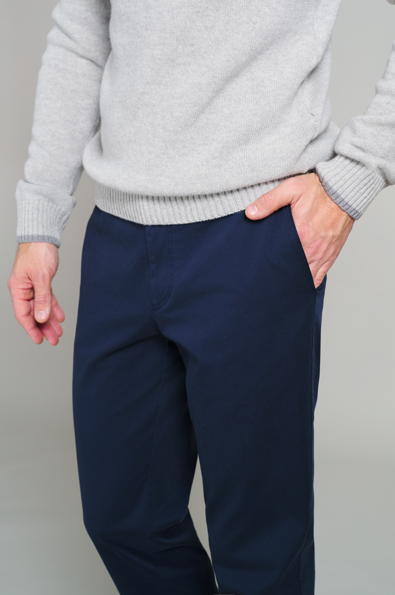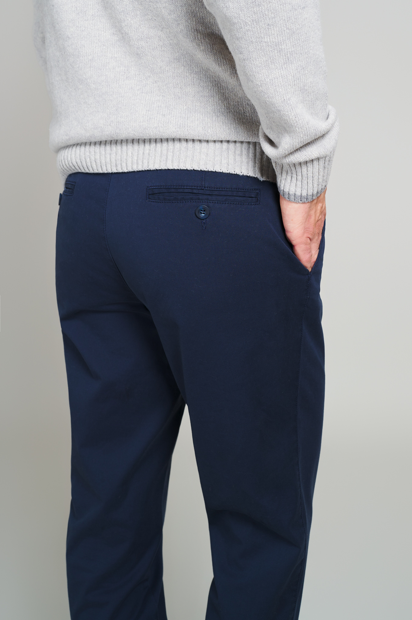 Pantaloni casual bleumarin cu statură SLIM-FIT, cu buzunare clasice la spate , cu paspol egal și nasturi pentru închidere.